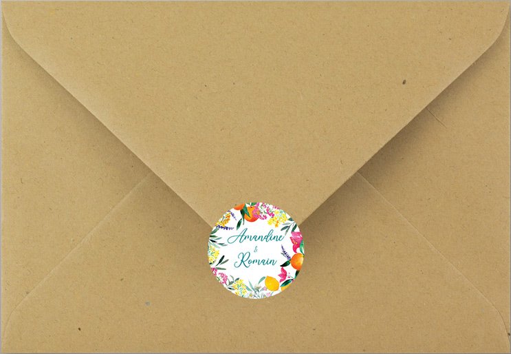 Idéal pour embellir vos enveloppes ou boite de dragées, le sticker rond est parfait pour finaliser votre papeterie !